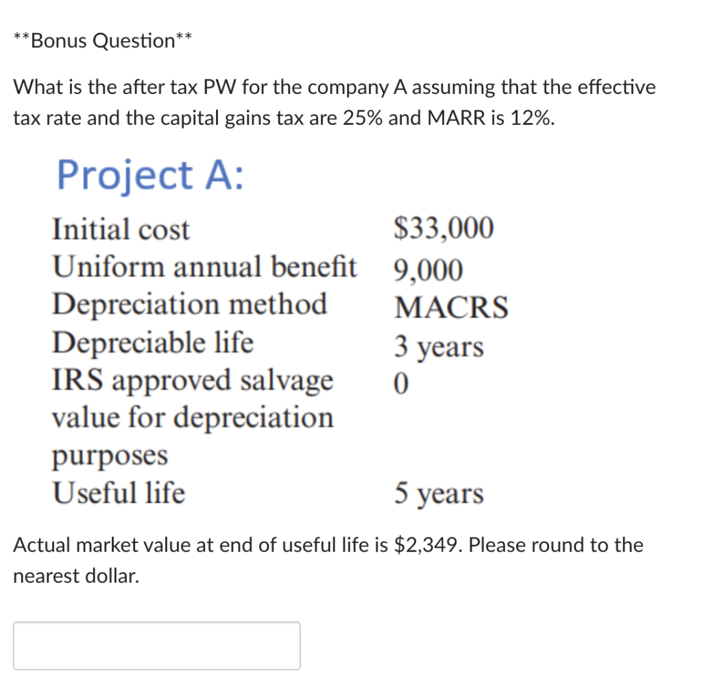 Solved Bonus Question What Is The After Tax Pw For The Chegg Com